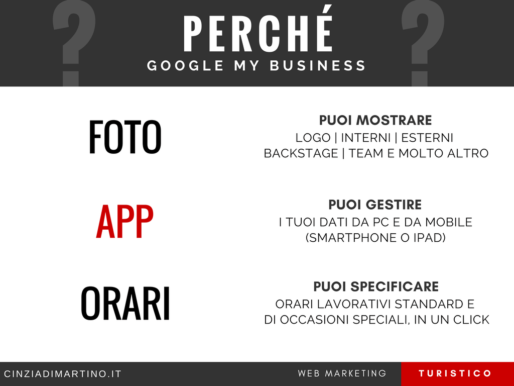 [NB. Su Google My Business puoi anche gestire orari particolari per giornate particolari. Non perdere l’occasione di offrire al tuo pubblico informazioni sempre valide: ne va della tua credibilità]